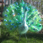 - Paon en plastique cela demandera beaucoup plus d'efforts et de temps, mais un travail minutieux et de la patience sera finalement payant avec un résultat impressionnant. Comme base, une cartouche en plastique ou une mousse synthétique est utilisée, à partir de laquelle il est facile de former la forme souhaitée du corps. L'étape la plus longue est la fabrication de plumes. Ils doivent être de différentes couleurs et tailles: du plus long pour la queue et le tronc au court pour la poitrine et la tête. Les grosses plumes peuvent être coupées en fines lanières. Pour le bec, vous aurez besoin d'une bouteille rouge, pour créer le plumage, il est nécessaire de coller les plumes préparées par étapes, en alternant les tailles et les couleurs. Pour les ailes et la queue, vous pouvez utiliser un maillage abrasif sur lequel les plumes sont vissées. Reste à relier tous les détails, disposer les yeux et la crête;