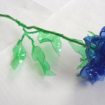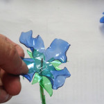 La tige est faite de fil et d'une bouteille verte, coupée en spirale. Le fil est enveloppé dans une spirale en plastique tout en chauffant au-dessus de la flamme. Un sépale est mis à l'extrémité du fil, puis des corolles de fleurs. Les feuilles sont faites comme des pétales.