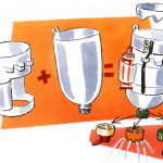 - à partir de trois bouteilles en plastique (de préférence sous la forme d'un baril), le fond doit être coupé et le col est coupé de deux d'entre eux;
