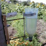 Certaines plantes n'aiment pas irrigation de surfacepar conséquent, ils doivent fournir de l'eau aussi près que possible du système racinaire. Une bouteille en plastique ordinaire sera également utile dans ce cas. Il suffit de couper le fond pour ouvrir librement le couvercle. La terre près de la plante est déchirée et une tranchée en pierre est aménagée pour que l'eau n'érode pas le sol. Reste à mettre la bouteille à l'envers et à la creuser légèrement avec de la terre. Si nécessaire, verser sera suffisant juste pour ouvrir le couvercle et verser de l'eau. Vous pouvez enterrer la bouteille et le fond vers le bas, mais dans ce cas, dans sa partie inférieure, il faudra faire beaucoup de crevaisons pour que l'eau puisse s'écouler tranquillement.