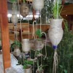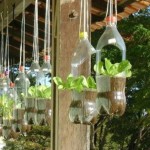 Une autre bonne option consiste à percer un trou dans la paroi latérale de la bouteille et à remplir la bouteille étroitement bouclée de terre, en y plantant la plante sélectionnée. Ces pots auront l'air effectivement suspendus au mur.