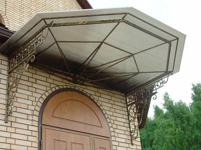Une large sélection de matériaux vous permet de créer une visière au-dessus du porche de toute forme et taille, mais emportée par le composant décoratif, n'oubliez pas les fonctions de base de la verrière. Il est possible d'entreprendre une production indépendante si vous avez entièrement confiance en vos capacités, sinon le processus risque de se transformer en argent et en temps gaspillés.