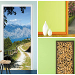 - utilisation de autocollants décoratifs sur les portes qui peuvent changer radicalement l'apparence de la pièce. Ces autocollants rappellent fond d'écran photo et aussi coller ensemble, peuvent répéter des paysages naturels ou urbains, des motifs floraux ou être abstraits, de sorte que la porte peut devenir un véritable centre de la pièce.