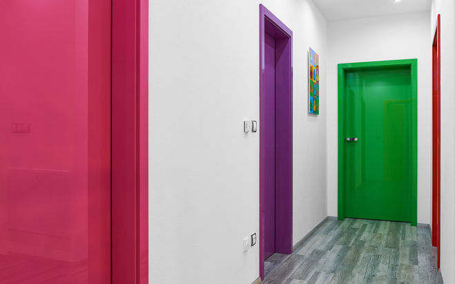 - utilisation de teintes contrastées - Le choix n'est pas pour tout le monde, mais pour certains appartements, les accents lumineux sur les portes intérieures seront juste le chemin. L'essentiel est que tous les membres du ménage aiment cette solution et n'embêtent personne;