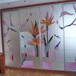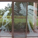 En outre, lors du traitement, vous pouvez utiliser des pigments colorants pour obtenir une image en couleur. Le plus difficile est de réaliser un vitrail sablé double face, car l'image doit parfaitement correspondre des deux côtés. Vitrail sablé excellent adapté à la décoration d'armoires, de portes, écranmiroirs.