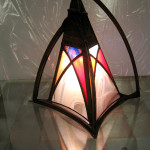 Les lampes en verre teinté font partie intégrante de l'intérieur avec style Art déco et Art nouveau, mais peut trouver une application dans d'autres directions. Les abat-jour en verre teinté peuvent décorer les lampes de table, les lampadaires et les appliques, ainsi que les plafonniers. La lumière passant à travers le verre coloré vous permet de créer une atmosphère inhabituelle dans la pièce, mais il est peu probable d'utiliser un tel éclairage comme principal.