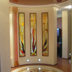 Le zonage de l'espace est souvent effectué à l'aide de cloisons sèches ou écran. S'ils sont décorés d'un vitrail, alors nous obtenons une décoration élégante de la pièce. La technique du vitrail est choisie en fonction du style de l'intérieur, mais l'utilisation d'éléments trop transparents n'est pas recommandée.