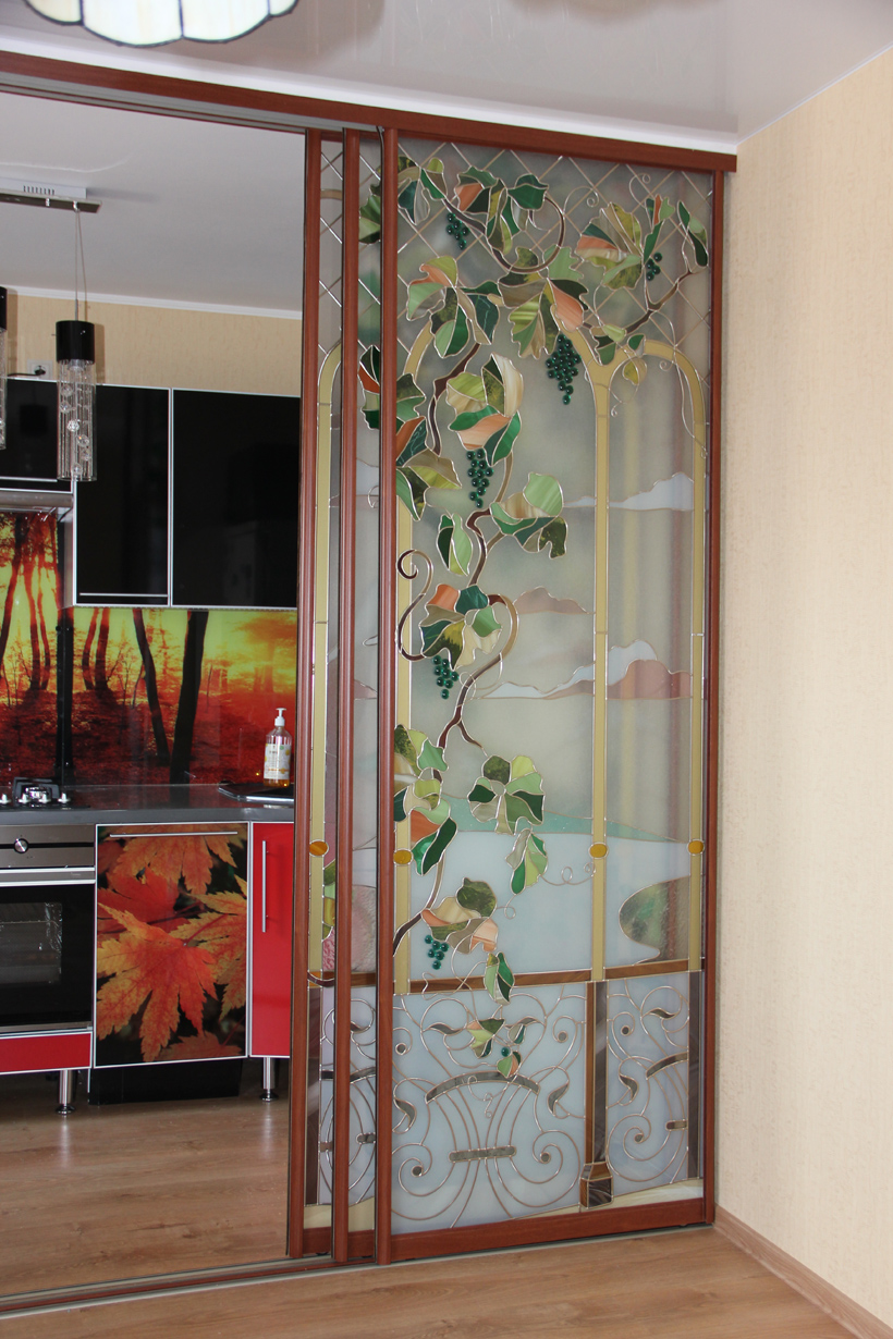 Le vitrail peut être utilisé pour décorer n'importe quel élément où il y a une surface en verre ou en miroir. Arrêtons-nous sur les options les plus intéressantes.