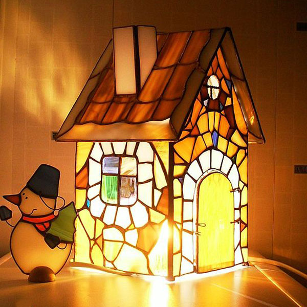 Les lampes en verre teinté font partie intégrante de l'intérieur avec style Art déco et Art nouveau, mais peut trouver une application dans d'autres directions. Les abat-jour en verre teinté peuvent décorer les lampes de table, les lampadaires et les appliques, ainsi que les plafonniers. La lumière passant à travers le verre coloré vous permet de créer une atmosphère inhabituelle dans la pièce, mais il est peu probable d'utiliser un tel éclairage comme principal.