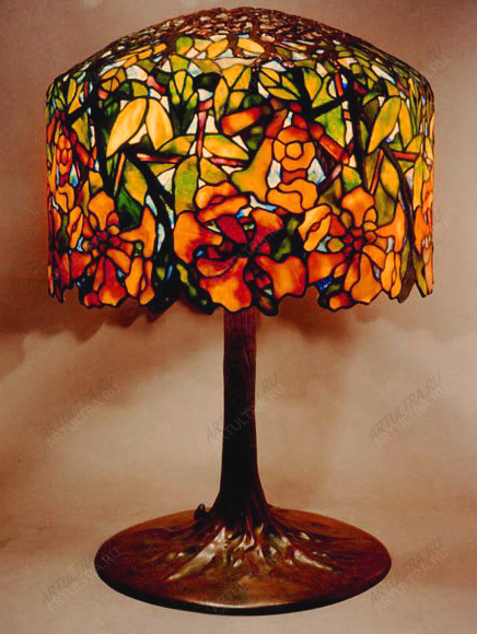 Le vitrail classique avec ses barres de métal brut était considéré comme imparfait par L.K. Tiffany, créateur d'une technique fondamentalement nouvelle pour la fabrication de panneaux de verre colorés. La méthode qu'il propose à la fin du XIXe siècle est toujours considérée comme l'une des meilleures, et des vitraux utilisant la technique Tiffany sont utilisés le plus populaire. Ils sont faits de verres individuels, coupés selon le croquis et bien tournés. Chaque élément est enveloppé d'un ruban de cuivre adhésif et ils sont combinés avec une soudure plomb-étain.