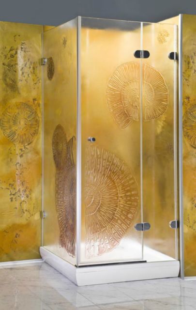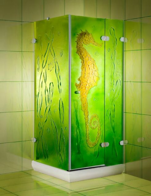 Auparavant, les vitraux n'étaient utilisés que dans les pièces sèches, mais aujourd'hui la technologie permet de les utiliser même pour la décoration douches. Le vrai vitrail devra cependant être caché dans un fenêtre à double vitrage, mais cela ne viole pas la légèreté et la délicatesse du panneau décoratif. De plus, dans la salle de bain, vous pouvez même créer un sol en vitrail avec éclairage, mais encore une fois, vous devez prendre soin de protéger un tel décor avec du verre durable.
