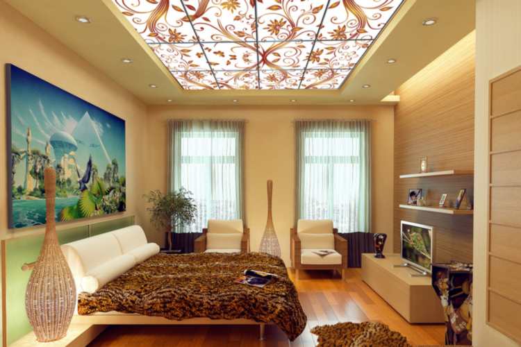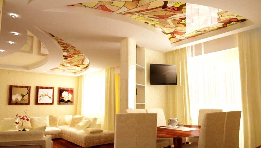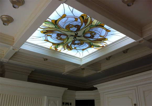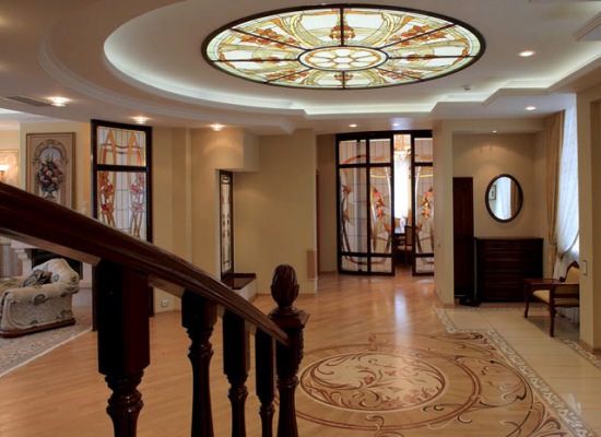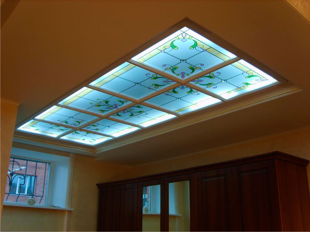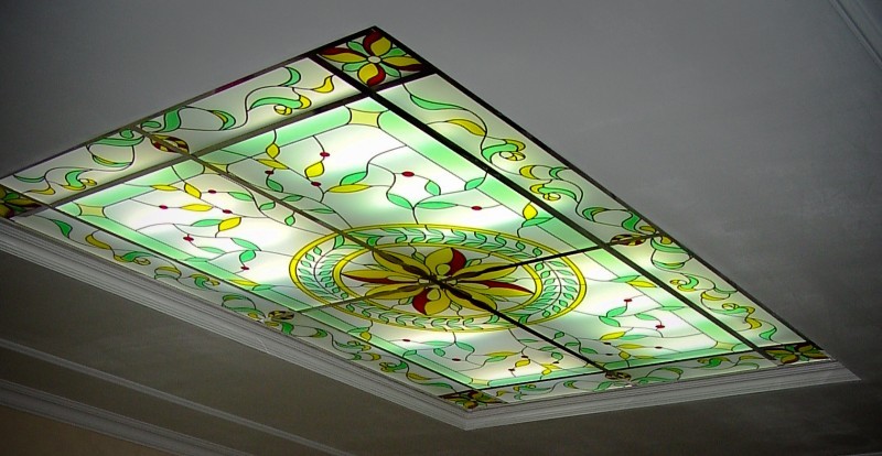 Un avantage supplémentaire de l'utilisation de vitraux au plafond est d'obtenir un éclairage intéressant. Souvent, ces inserts sont utilisés pour décorer les salons et les salles à manger.