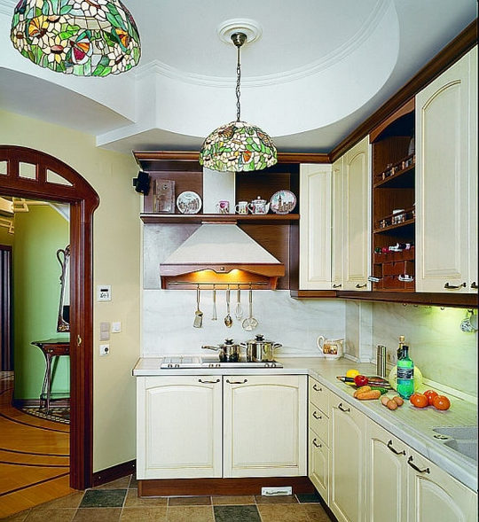 Souvent dans les cuisines de fumées constantes et une humidité élevée souffre le plafond, et même hotte de cuisine pas toujours en mesure de sauver la situation. Si la finition du plafond doit être restaurée, il est préférable de commencer à travailler. Les meubles peuvent être recouverts d'une pellicule plastique, puis procéder aux travaux de restauration. Fissures petites et moyennes dans le plafond peint peut être mis en place, et déjà au-dessus de la peinture. Presque tout le monde peut y faire face, et le coût d'un tel travail n'affectera pas beaucoup le budget.