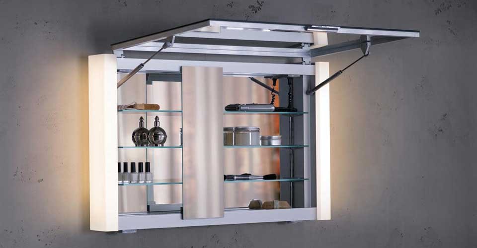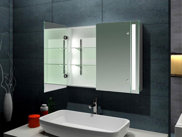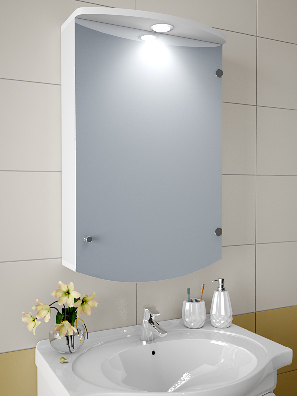Certains modèles d'armoires murales avec miroir sont complétés contre-jour, réalisé sous forme de bande LED ou de projecteurs. Ces éclairage jouera le rôle d'un local et permettra des procédures d'hygiène plus confortables près du miroir, remplaçant complètement les appareils individuels.
