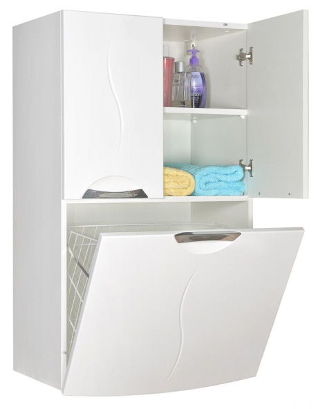 Armoire fermée suggère que tout le contenu de ses étagères est complètement caché derrière les portes.C'est l'option la plus populaire, car elle est en mesure de fournir aux objets stockés une protection contre les gouttes condensées d'humidité. De plus, avec des étagères fermées, garder la salle de bain dans un état soigné est beaucoup plus facile.