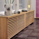 Pour masquer les batteries, vous pouvez également utiliser des écrans en bois, qui sont à la fois attachés et plats, si le radiateur est situé dans niche. Cette option peut être appelée la plus vert et l'un des plus attrayant en apparence, car vous pouvez obtenir des écrans avec les motifs les plus bizarres d'un arbre malléable pour le traitement. Extérieurement, un tel écran peut avoir tout type d'apparence, il peut être acheté à la fois prêt à l'emploi et sur mesure.