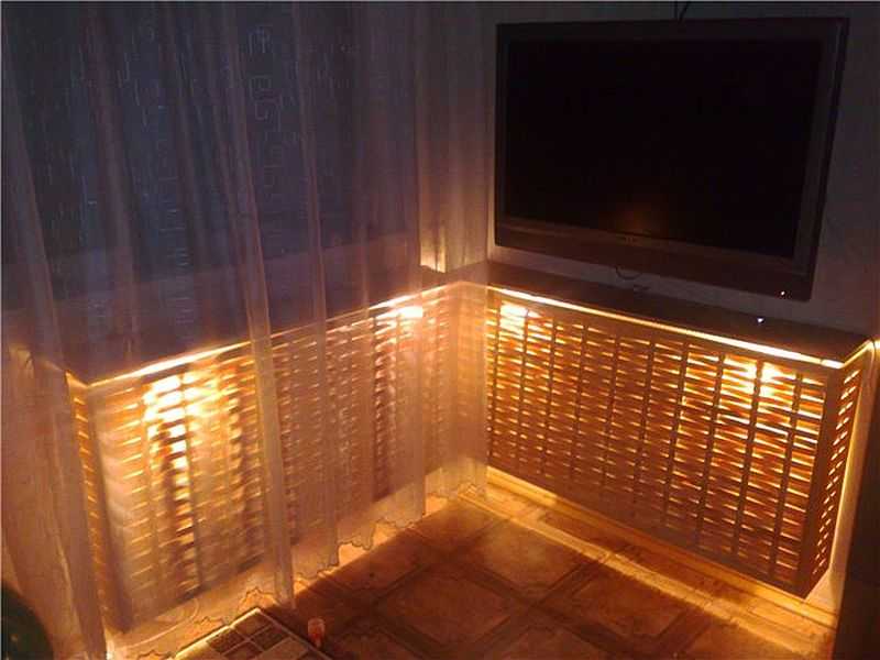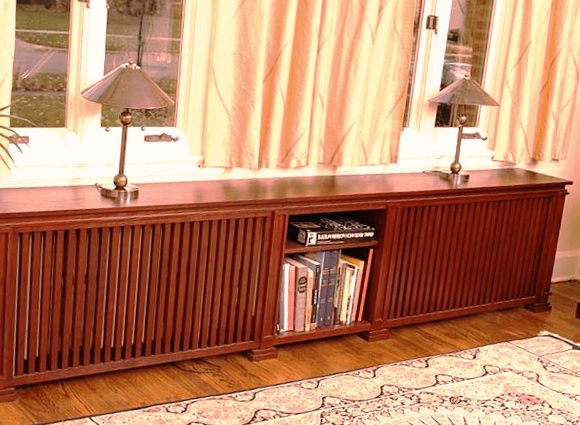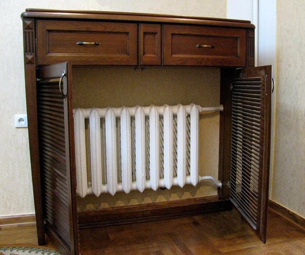 - stores - Une façon très inhabituelle de cacher un radiateur, mais dans certains cas, il y a un endroit où être. Le travail d'installation est minime;