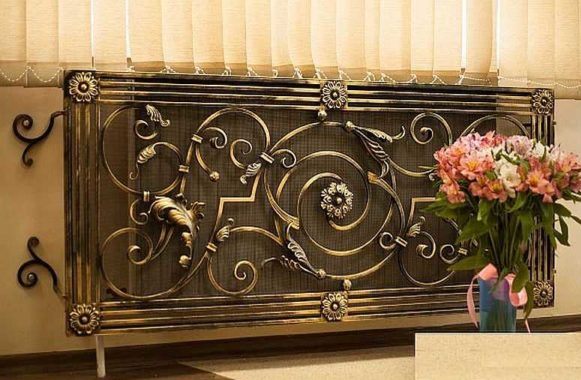 L'écran de rideau en métal peut être de n'importe quelle couleur et style. Vous pouvez même trouver version forgée ou écran en acier inoxydable avec une surface brillante. Si les premiers ont l'air bien dans le style classique, les seconds complèteront l'intérieur style high tech. Les écrans forgés en raison de leur ajourage offrent une excellente circulation de l'air, mais un radiateur est visible à travers eux, ils sont donc souvent dupliqués avec une feuille métallique perforée.