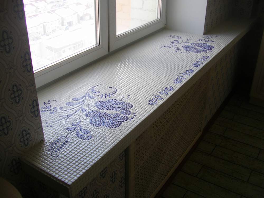 Si les options décrites ne suffisent pas, vous pouvez toujours faire preuve d'imagination et disposer le rebord de la fenêtre les restes de carreaux de céramique (pertinent dans la cuisine et la salle de bain), mosaïque ou en mettre quelques-uns oreillers moelleuxpour créer un endroit confortable pour se détendre.