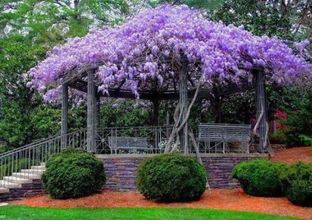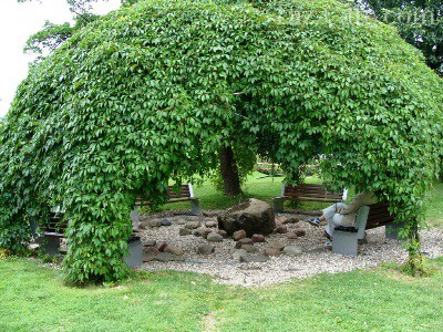 Pour créer ce type de gazebo, utilisez saule, saule, sorbier et d'autres espèces de plantes trop petites, pleureuses et naines. Ils atterrissent en cercle et, à mesure qu'ils grandissent, se forment dans la bonne direction, c'est-à-dire au centre du gazebo, créant un toit.
