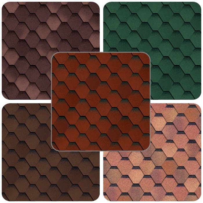 - couche décorative supérieure Il est composé de granulés de basalte, de silicium ou de copeaux de schiste. Il donne au produit la couleur nécessaire, le rapproche esthétiquement de carrelage naturel, et joue également le rôle de protection supplémentaire contre les dommages mécaniques, l'humidité, les rayons ultraviolets, protège la couche de bitume de la fonte sous l'influence des températures élevées. L'arrosage augmente également la résistance et la durabilité. Basalte - L'option de revêtement la plus préférée et la plus courante. Ses particules adhèrent étroitement les unes aux autres et sont mieux fixées à la surface. Ardoise a tendance à absorber les huiles contenues dans le bitume et à changer de couleur;