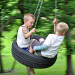 Si le pneu est fixé horizontalementIl servira de siège confortable et durable. En utilisant les mêmes boulons à œil sur le pneu, 3 ou 4 fixations sont faites à égale distance les unes des autres (les points de fixation doivent former un carré ou un triangle régulier). Des cordes ou des chaînes sont fixées à la base (cadre en métal ou en bois, branche d'arbre), puis fixées au pneu. Dans les chalets d'été, le pneu est souvent attaché en 2-3 endroits avec une corde épaisse, avec laquelle la structure est attachée à l'arbre.