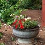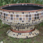 - si nous attachons un morceau de contreplaqué solide du diamètre requis et trois jambes au pneu, nous obtenons un joli pot de fleurs qui peut même être transporté;