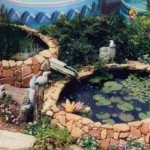 - il reste à décorer le bâtiment pierres, fleurs et arbustespour cacher complètement l'origine de l'étang.