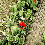 - l'option la plus simple - il suffit de mettre le pneu à l'endroit où le parterre sera organisé, de le remplir de terre et de procéder à la plantation des fleurs. Pour donner au parterre un aspect attrayant, le pneu est pré-peint dans la teinte nécessaire, les motifs appliqués, etc.;