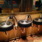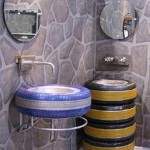 Un motif caractéristique sur la bande de roulement du pneu peut servir de décoration de la buanderie, si vous utilisez un pneu comme plinthes. Cette solution protégera le bas du mur de la pollution et coûtera complètement gratuitement. Après la procédure de séparation de la bande de roulement, vous pouvez procéder à l'installation des bandes préparées, mais vous devez d'abord vous assurer qu'il y a suffisamment de matériel pour décorer toute la pièce.