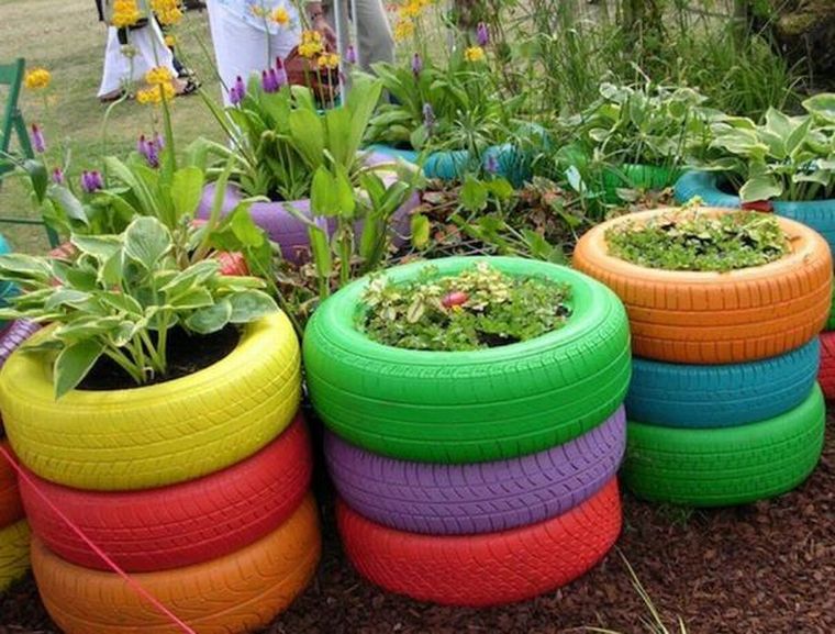 Vous pouvez également faire un endroit soigné pour stocker les déchets dans le pays avec des pneus. Il suffit de mettre 2 à 4 pneus les uns sur les autres, de mettre un sac à ordures à l'intérieur et le réservoir est prêt. S'il est encore peint, il se révélera complètement cool.