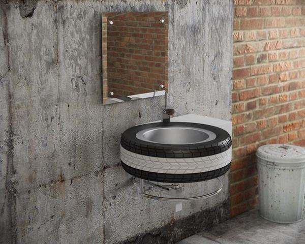 Jolie lavabo champêtre peut être construit en insérant un bassin ou un bol approprié dans le pneu. Au centre du bassin, un trou est fait pour drainer l'eau. La peinture est appliquée aux motifs.