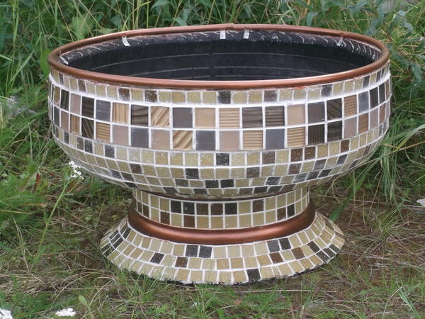 - si nous attachons un morceau de contreplaqué solide du diamètre requis et trois jambes au pneu, nous obtenons un joli pot de fleurs qui peut même être transporté;