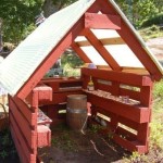 La géométrie exacte des palettes en bois permet de les utiliser dans la construction de structures simples. Des palettes, il est facile d'obtenir une construction carrée ou rectangulaire de n'importe quelle taille. Suivant le même principe tonnelles, abris, poulaillers, petites maisons d'été et même cabines pour animaux de compagnie - Les caractéristiques de décoration et de design dépendent des préférences personnelles et de l'imagination.