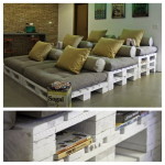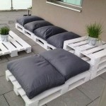 Il est facile de créer à partir d'une palette et canapés absolument toutes les tailles et configurations (droites, angulaires, en forme de U). Pour ce faire, vous devez fixer successivement une série de palettes les unes aux autres afin d'obtenir une pièce de la longueur et de la forme requises. Une deuxième rangée de palettes est fixée sur le dessus pour obtenir une hauteur d'assise confortable. Le dos est attaché à la structure finie. Des vis autotaraudeuses et des vis sont utilisées comme fixations. Le blanc est peint et décoré d'oreillers.