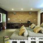 Ceux qui suivent le temps et utilisent le chalet non seulement pour cultiver des légumes et des fruits, savent que vous pouvez organiser vos vacances à la campagne à l'aide d'un projecteur, de plusieurs bons films et d'un groupe d'amis. Vous pouvez organiser un endroit confortable pour regarder un film à l'aide de palettes. Pour créer un lit à trois niveaux, vous aurez besoin de 12 palettes: la base est renversée et 6 palettes, et la hauteur du premier niveau sera égale à la hauteur d'une palette. Pour équiper le deuxième étage, à la partie centrale de la base, fixer sur une palette. Le troisième étage nécessitera la fixation séquentielle de deux autres couches de palettes. Il reste à peindre le design et à décorer avec des oreillers. Au fait, une solution similaire utile pour organiser un home cinéma dans une pièce.