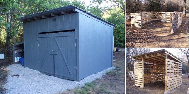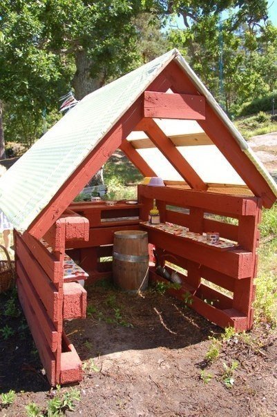 La géométrie exacte des palettes en bois permet de les utiliser dans la construction de structures simples. Des palettes, il est facile d'obtenir une construction carrée ou rectangulaire de n'importe quelle taille. Suivant le même principe tonnelles, abris, poulaillers, petites maisons d'été et même cabines pour animaux de compagnie - Les caractéristiques de décoration et de design dépendent des préférences personnelles et de l'imagination.