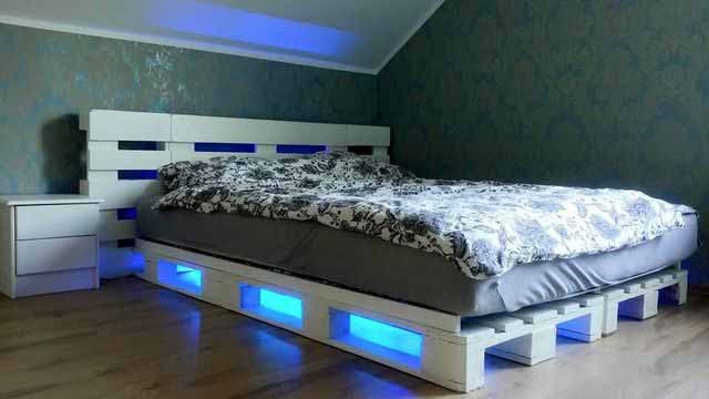 Si la base en bois s'est avérée être beaucoup plus grande que le matelas, elle peut être utilisée comme un podium ou un banc impromptu pour les pieds. Les trous qui se forment lors de l'installation d'un niveau de palettes sur l'autre sont utilisés pour stocker la literie, les livres, les magazines ou pour organiser rétroéclairage intégré. Les palettes sont un matériau durable, il n'est donc pas nécessaire de s'inquiéter de la fiabilité d'une couchette - mieux faire attention au choix d'un matelas ergonomique confortable.