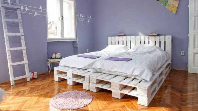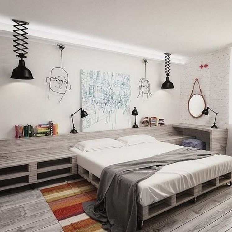 Lit des palettes est une solution assez audacieuse, à première vue, qui, néanmoins, a déjà commencé à être utilisée dans les maisons de campagne, dans les chalets d'été, et même dans l'ordinaire appartements en ville. Vous pouvez organiser les palettes comme vous le souhaitez, en fonction des exigences les lits. La hauteur est régulée par le nombre de palettes installées les unes sur les autres, la présence ou l'absence de pieds, roues, etc. La largeur et la longueur de la couchette sont également faciles à régler. Si vous le souhaitez, à partir de la même palette Vous pouvez faire la tête du lit.