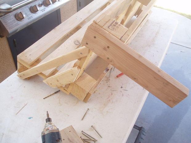 - diviser une palette standard et pré-préparée en deux parties, de sorte que l'une d'entre elles soit composée de 4 planches (futur siège) et la seconde de 3 planches (arrière);