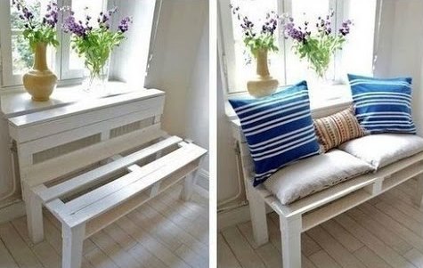 - en finale, vous pouvez découper des éléments décoratifs au dos, puis recouvrir le banc de vernis ou de peinture de la teinte souhaitée et décorer avec des oreillers. Ces derniers peuvent être achetés, fabriqués sur commande ou cousus par vous-même.