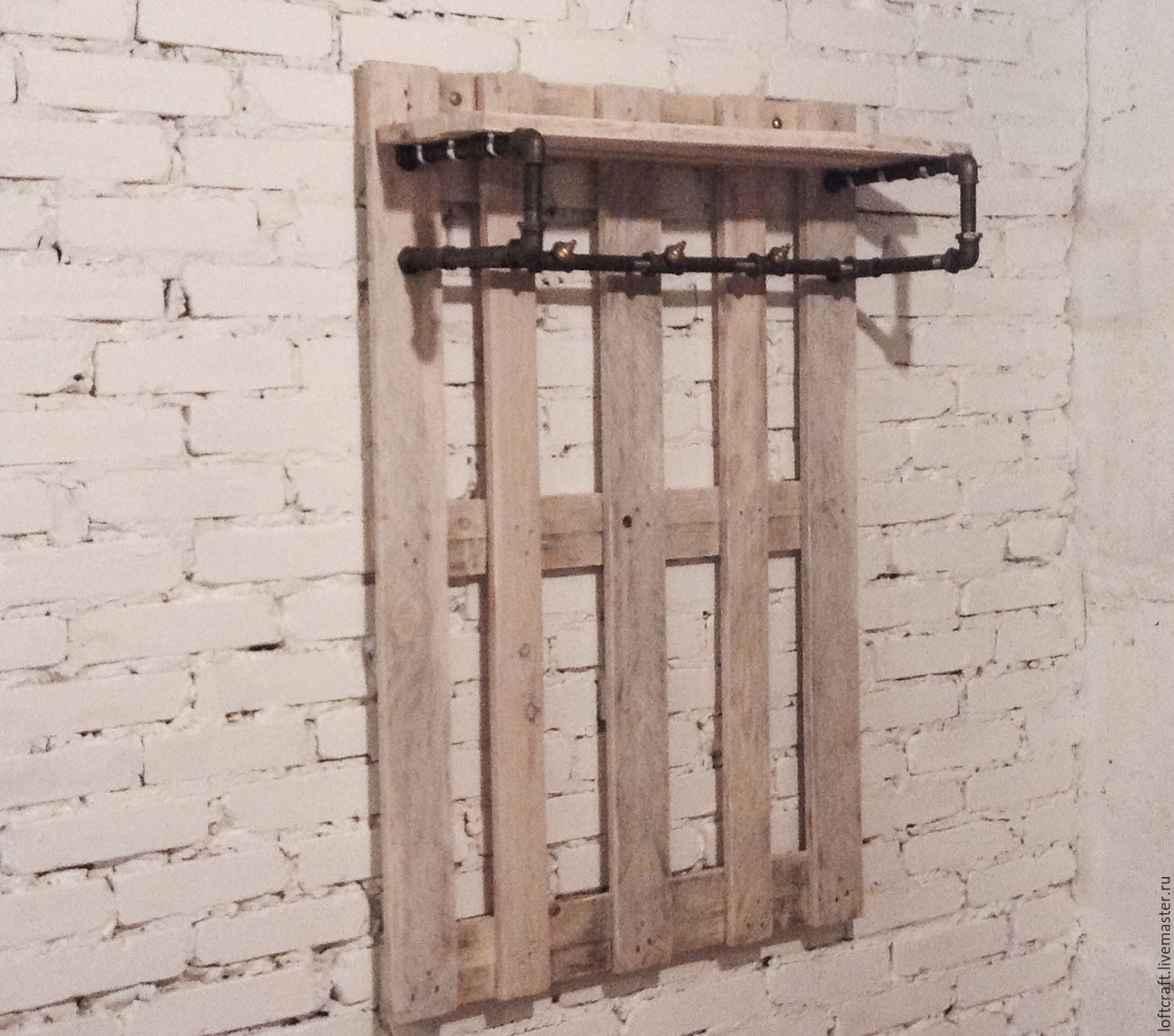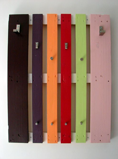 Un autre artisanat intéressant fabriqué à partir de palettes est un cintre, qui peut devenir la décoration d'une maison de campagne ou même d'un appartement ordinaire. Pour le créer, vous avez besoin d'une base de palette (revêtement de sol), les côtés doivent donc être soigneusement retirés. Ne vous précipitez pas pour jeter les restes - ils peuvent encore être nécessaires. La base est bien poncée, traitée avec des agents protecteurs et peinte dans la teinte souhaitée. Il reste à y attacher plusieurs crochets: leur nombre et leur emplacement les uns par rapport aux autres dépendent de vos besoins. Le cintre prêt est fixe sur le mur à propos porte d'entrée.
