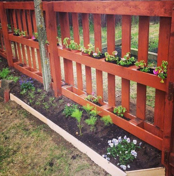 Les palettes seront disposées verticalement, si nécessaire en deux rangées, si une clôture plus haute est requise. Les supports seront des tuyaux métalliques, installés dans les évidements et coulés avec du béton. Les palettes sont fixées aux supports, le bord supérieur peut être compris et toute la structure peut être peinte et décorée de pots de fleurs si vous le souhaitez. Si vous avez les compétences nécessaires pour installer des boucles, la porte de la palette n'est pas un problème à faire. Si nécessaire, vous pouvez dupliquer une telle clôture filet ou des feuilles de polycarbonate.