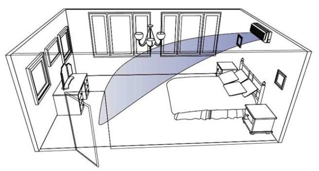 - l'air froid ne doit pas tomber sur le lit, le canapé, bureau et autres endroits où les ménages se trouvent depuis longtemps. La concentration maximale d'air froid est observée à une distance de 2-3 mètres du climatiseur, puis la fraîcheur se dissipe;