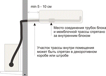 - le moins sera distance entre les unités intérieure et extérieure la climatisation le mieux. Premièrement, l'installation est moins chère, et deuxièmement, il y a moins de problèmes avec le camouflage de la route du Fréon, et troisièmement, plus élevé efficacité du système. La distance optimale entre les blocs est de 5 à 10 m, c'est possible moins, mais pas plus, si souvent ils placent le climatiseur sur le mur où se trouve la fenêtre, ou sur le adjacent;