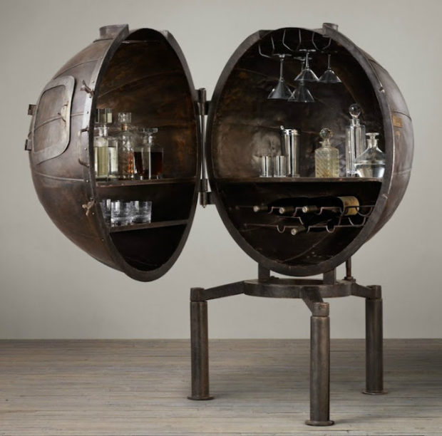 - globes, barils et d'autres articles qui, à première vue, ne sont que de la décoration, mais cachent en fait suffisamment d'espace pour stocker de l'alcool. C'est une excellente option pour le bureau du chef, le bureau à domicile et le salon;