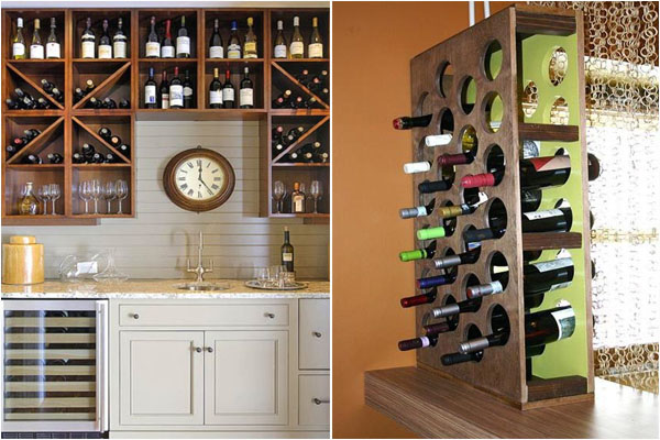 - utiliser casiers spéciaux ou cavistesoù les bouteilles seront stockées horizontalement ou inclinées. En termes de taille et de design, ces racks peuvent être n'importe quoi - ce n'est qu'à la première connaissance de l'assortiment que la tête peut tourner. La vinothèque peut être un élément indépendant ou intégrée à un autre meuble. La hauteur varie de 50 cm à 2 m, le nombre de places pour les bouteilles - de 3 à presque l'infini. Certains modèles sont également équipés d'emplacements pour ranger les verres et autres attributs nécessaires;