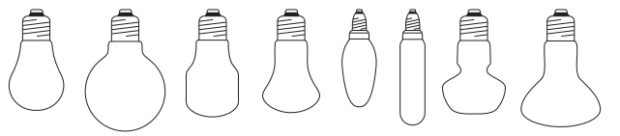 S'il est nécessaire que la lampe donne non seulement de la lumière, mais remplisse également une fonction décorative, il est préférable de choisir ampoules à ledqui peut être en forme bougies, boule etc. Les lampes halogènes et incandescentes offrent encore plus de choix à cet égard, mais économiser avec elles ne fonctionnera pas. Tubes fluorescents libéré uniquement sous forme de spirales et de tubes.