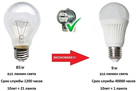 - consommation d'énergie économique. La lampe LED est 2 à 3 fois plus économique qu'une lampe fluorescente et 6 à 10 fois - qu'une lampe à incandescence;