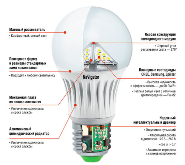 Les ampoules LED sont le summum de l'évolution des ampoules. Ils sont dépourvus des inconvénients caractéristiques des analogues, consomment 6 à 10 fois moins d'électricité que les lampes à incandescence et plusieurs fois plus durables que les lampes fluorescentes. Dans ces lampes, il n'y a pas de spirales de tungstène ou de substances nocives - la source lumineuse est une LED, dont le principe complexe permet de se passer de l'utilisation de composés dangereux et toxiques.